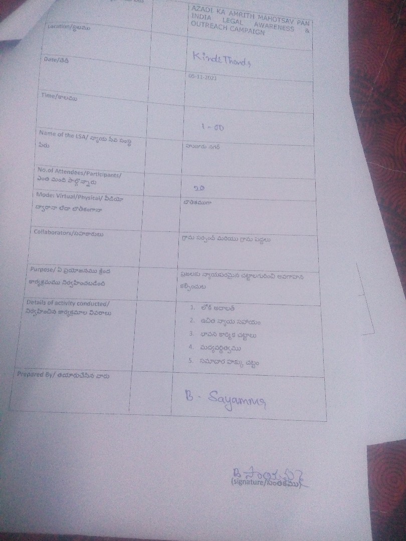 గ్రామ కార్యదర్శి B. రాధిక గారు. . పార లీగల్ వాలంటీర్లు