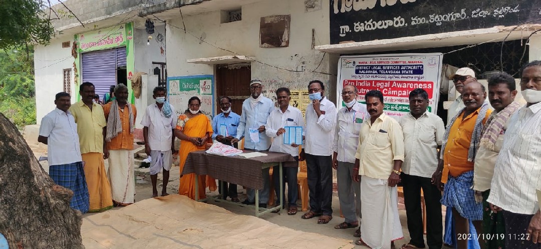 ఈరోజు 28/10/2021 నల్గొండ మండలం బుద్దారం గ్రామాల్లో చట్టాలపై అవగాహన, డోర్ టు డోర్ క్యాంపియన్ కార్యక్రమంలో మండల పారా లీగల్ వాలంటీర్లకు భీమనపల్లి శ్రీకాంత్, వాహిద్ నిర్వహించారు , ఈ కార్యక్రమంలో ఆశా వర్కర్లు, అంగన్వాడీ టీచర్ , గ్రామ పంచాయతీ సిబ్బంది, గ్రామ ప్రజలు పాల్గొన్నారు.